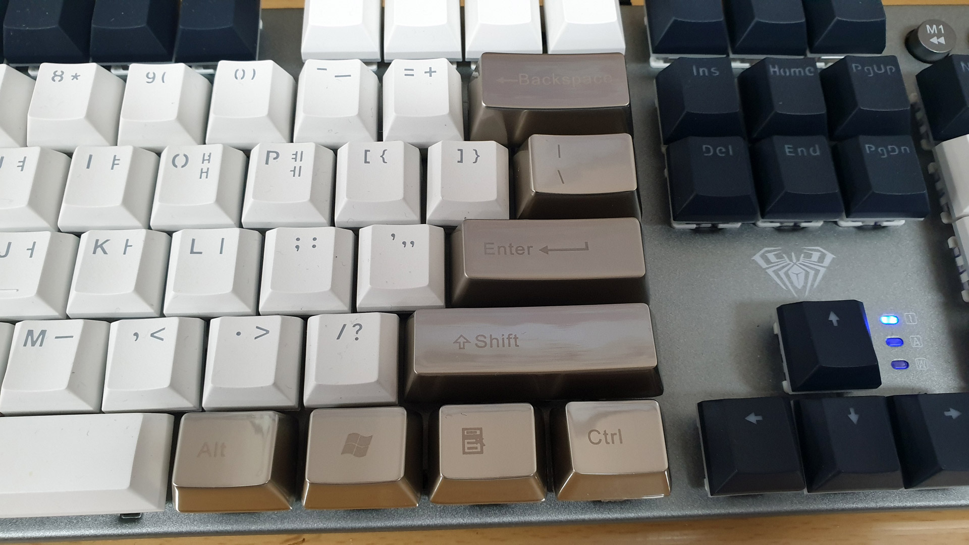 금속 키캡은 요정도만 교체하는게 적당한것 같아요 ㅎㅎ 묵직하니 좋기는 하지만... 전부 하려면 가격이 좀... ㅋㅋㅋ