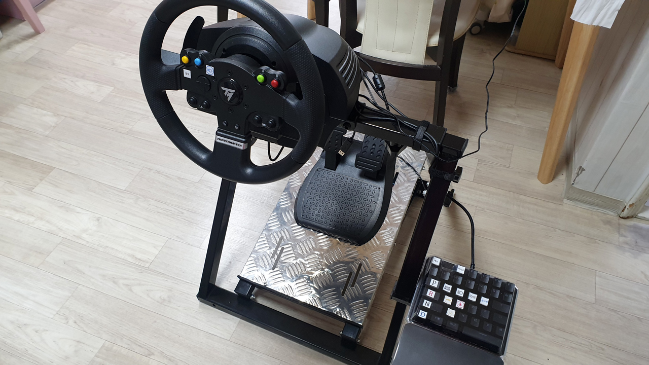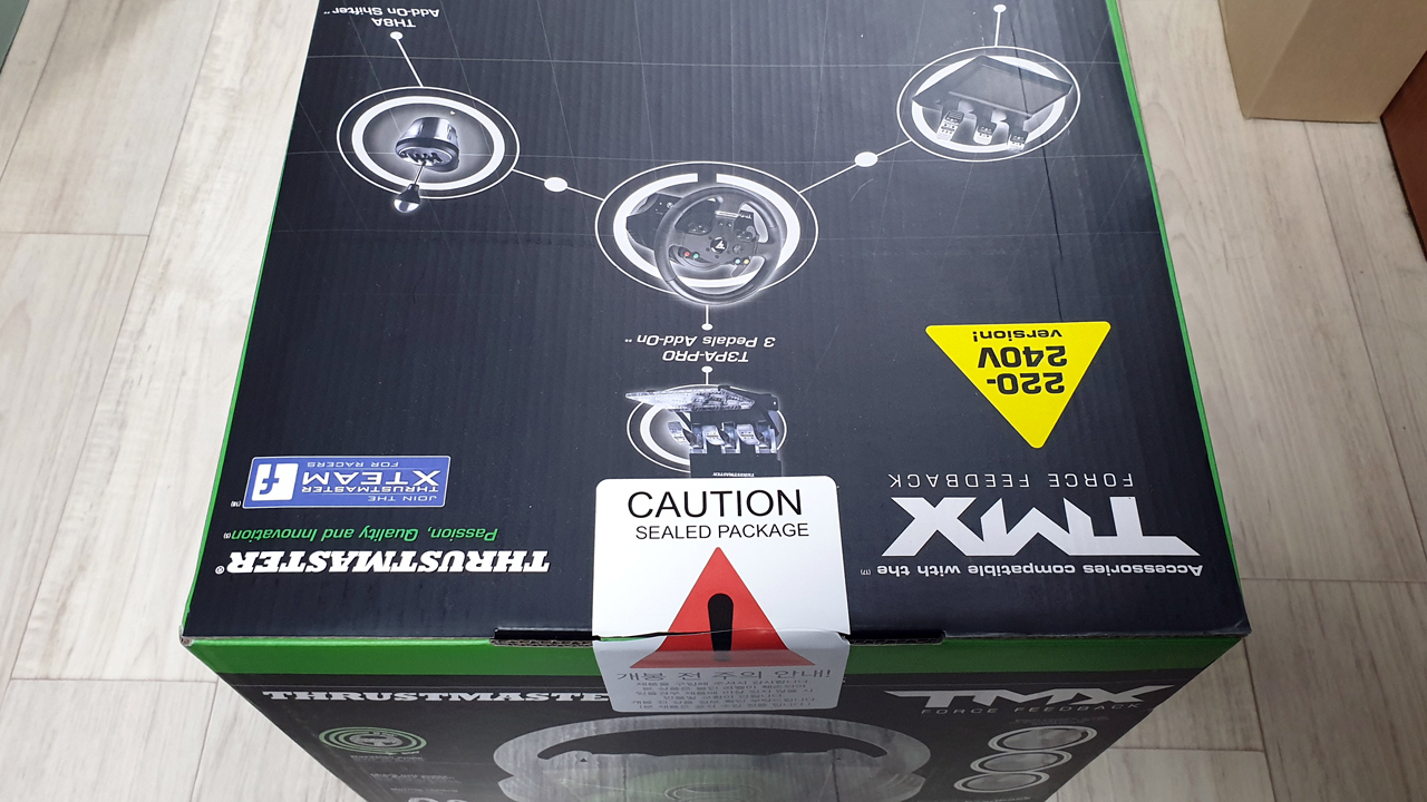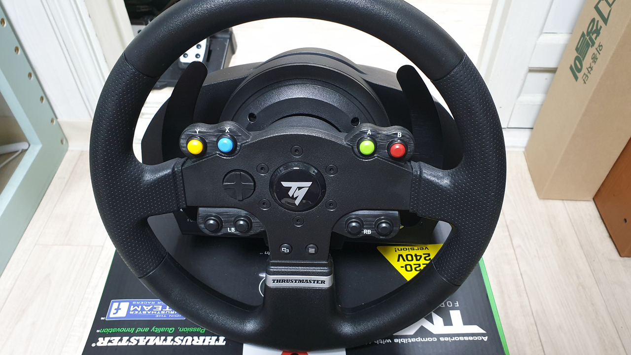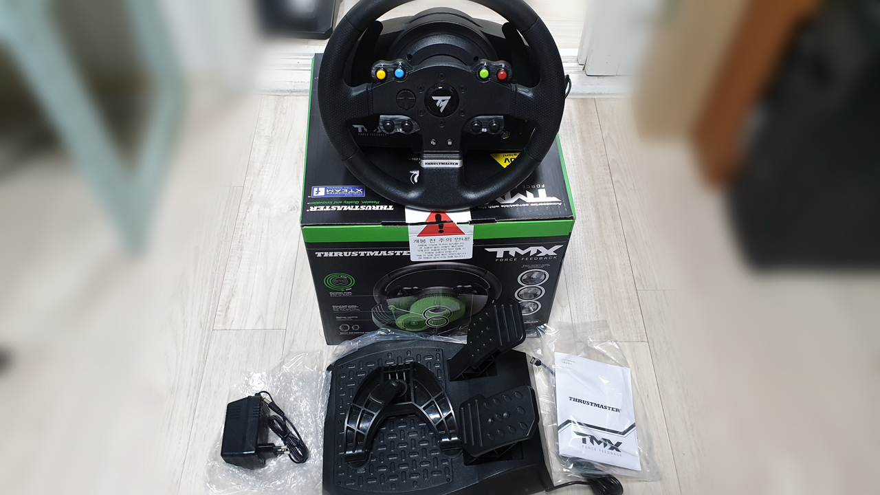 레이싱 휠은 트러스트마스터 의 TMX 제품입니다.