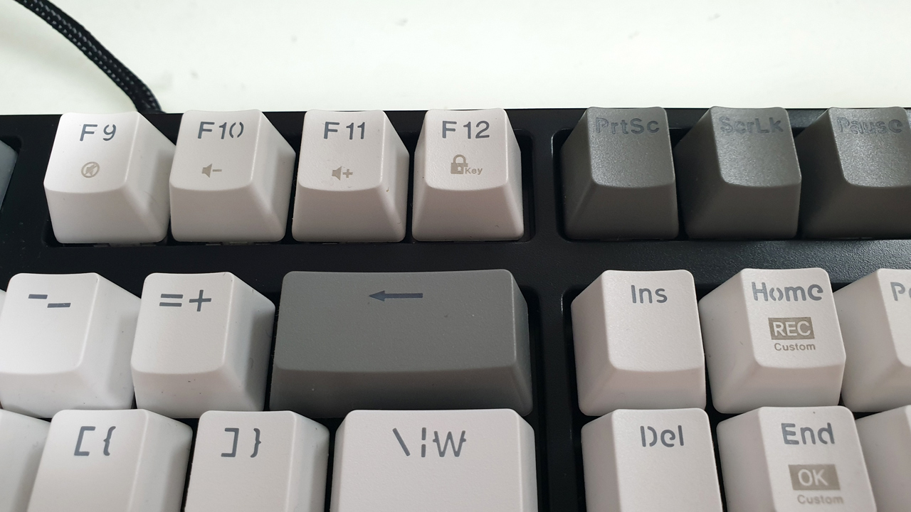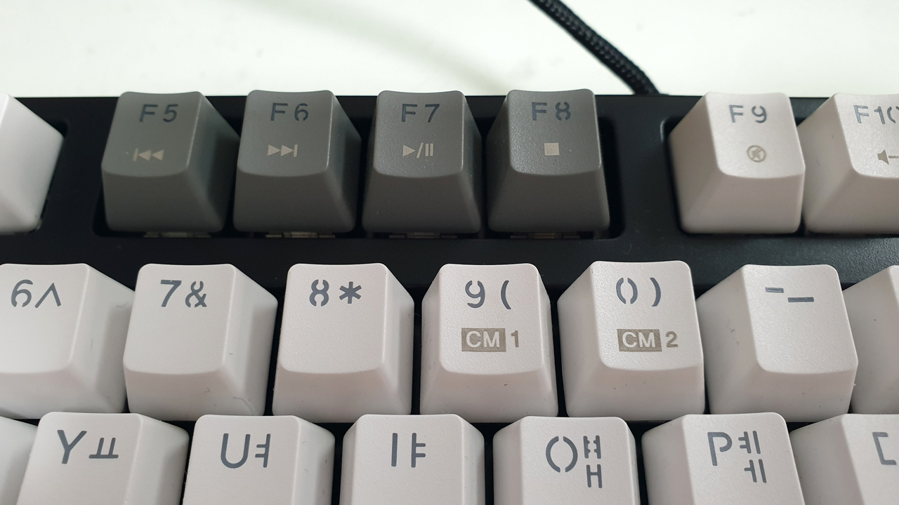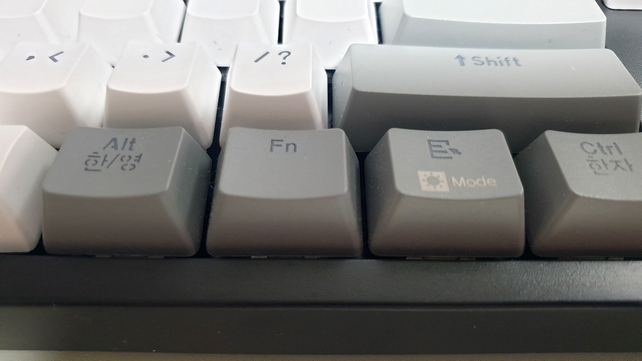 키캡에 회색으로 표시(실크스크린)되어 있는 것이 펑션키 조합으로 사용할 수 있는 기능키 입니다.