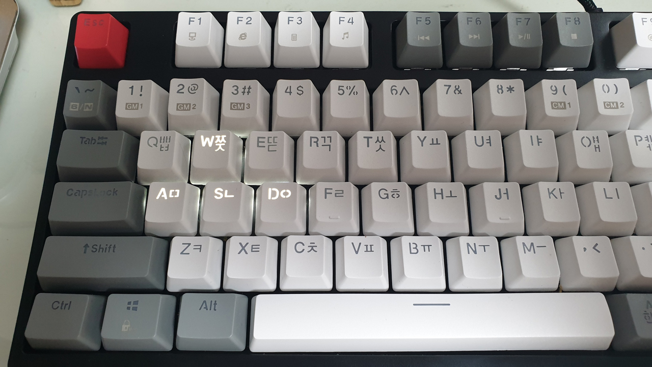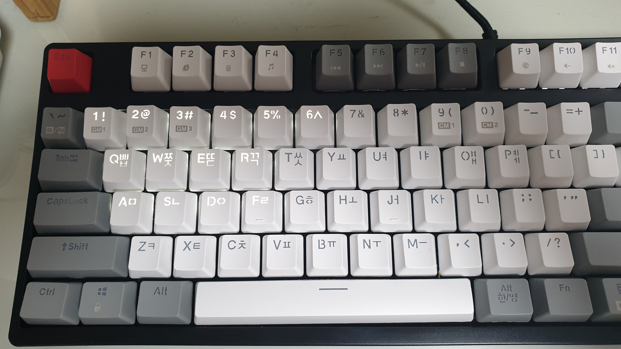 ESC 키도 빨간색으로 포인트가 들어있어서 꽤 세련된 느낌~~ 적인 느낌 입니다.