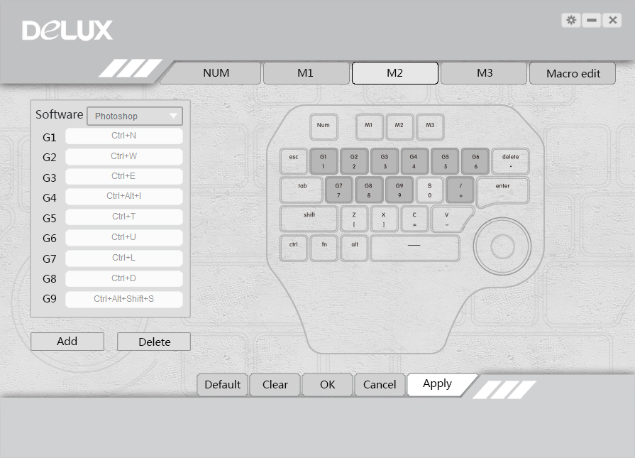 추가된 프로파일은 M1~M3 탭에서 "Software" 항목에 설정해 주면 됩니다.