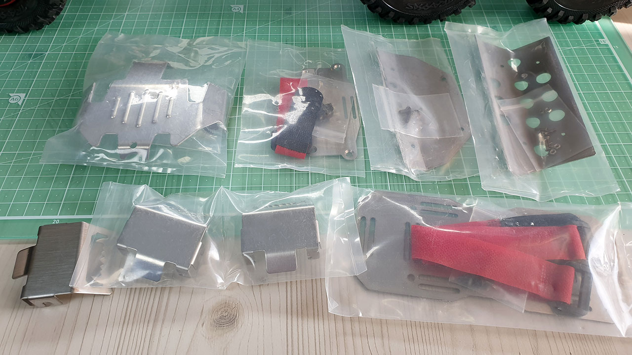 구성품은 미션(기어박스)커버, 프론트/리어 범퍼 스키드, 디프하우징 스키드, 프론트 및 배터리 플레이트 입니다.