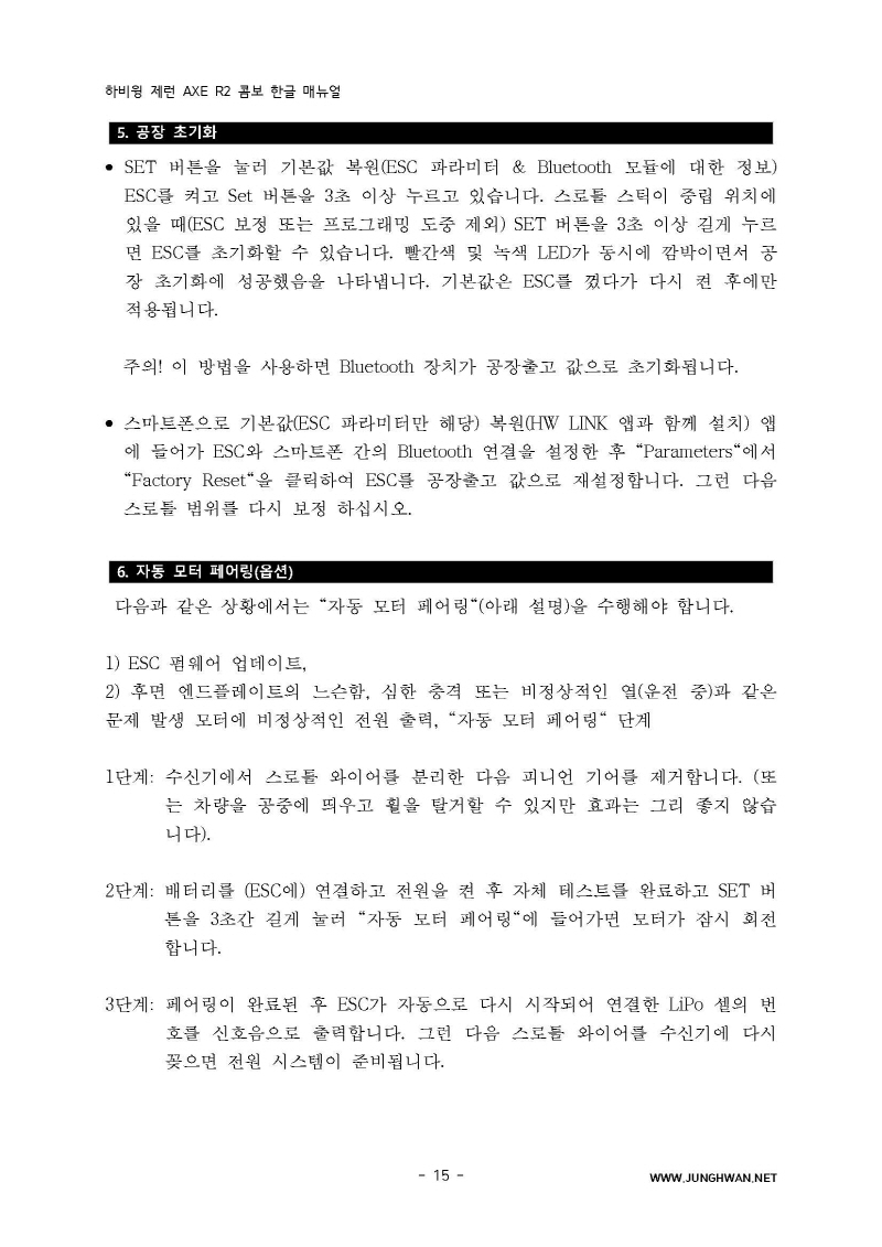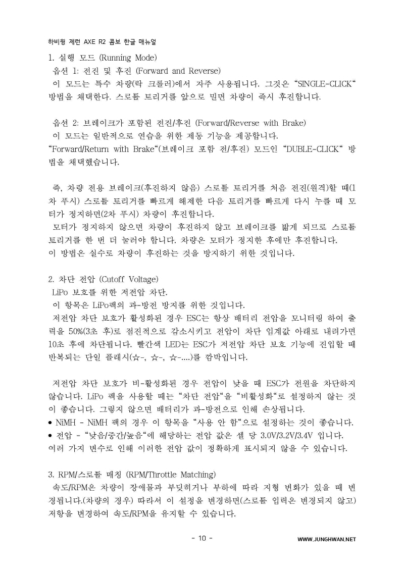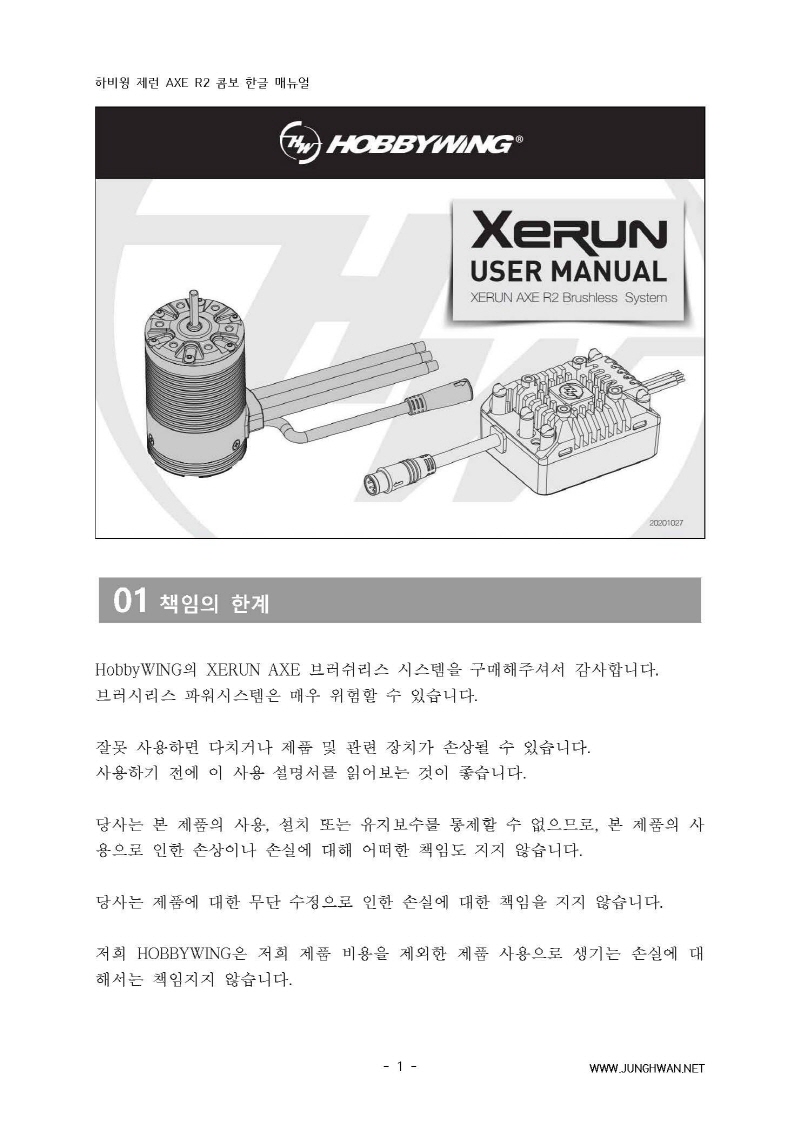 하비윙 XERUN AXE R2 Combo 변속기 및 모터 한글매뉴얼 입니다.