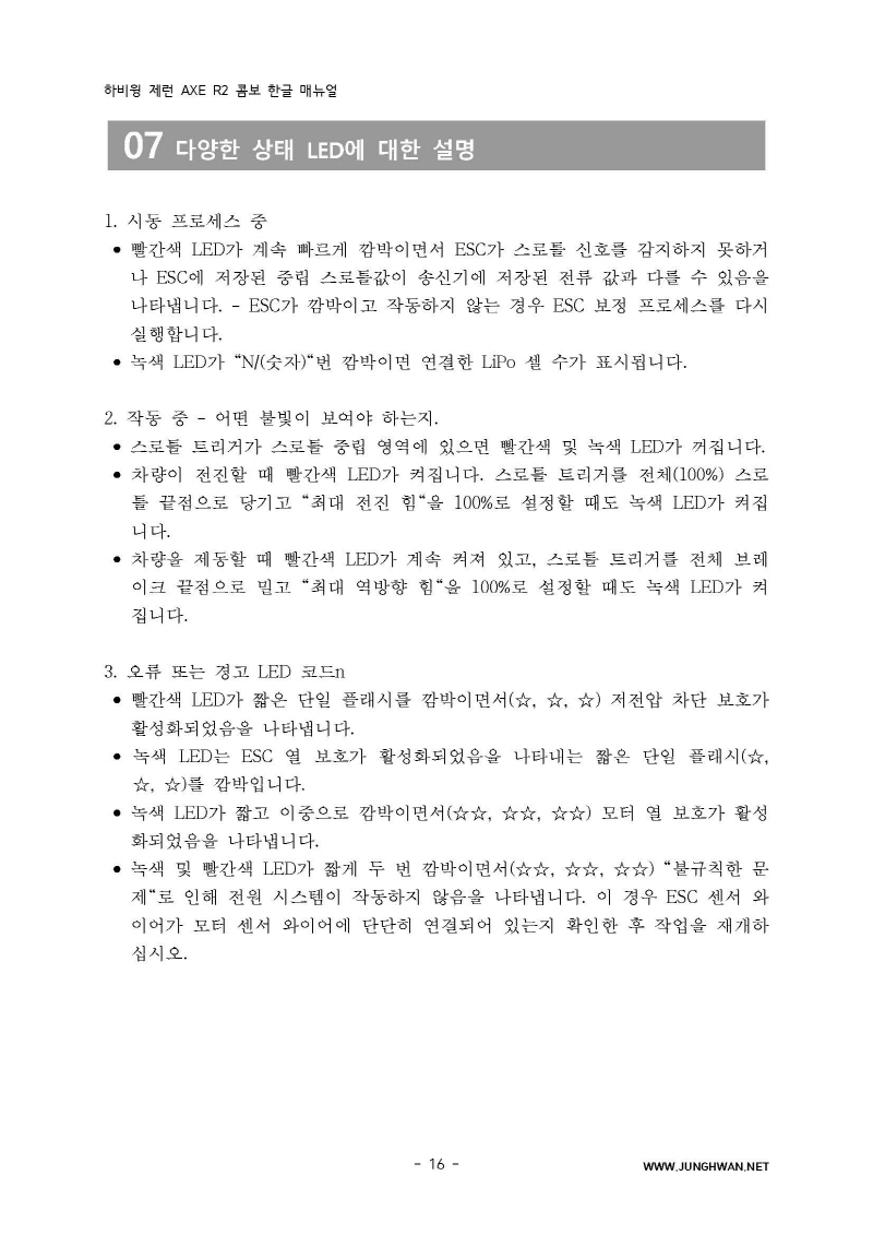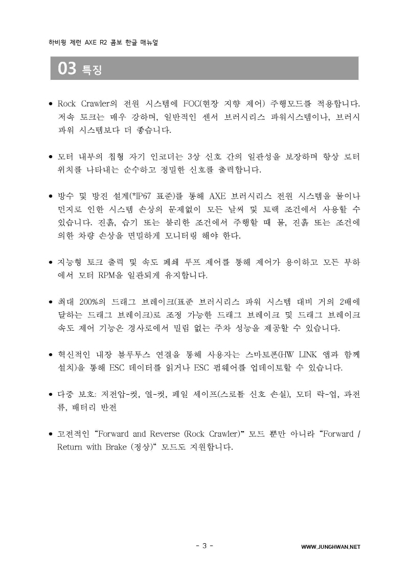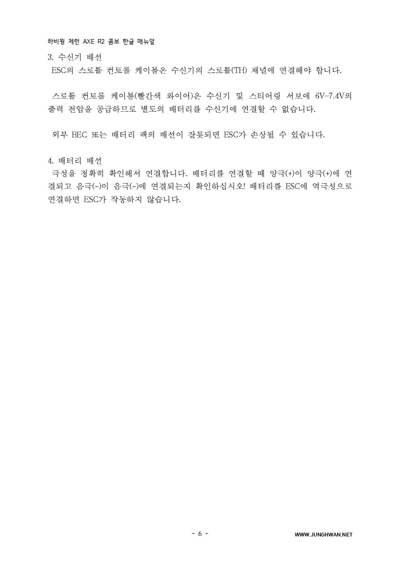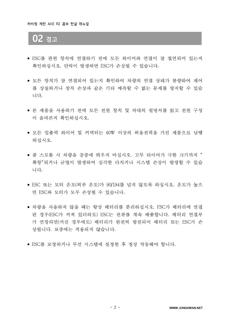 하비윙 XERUN AXE R2 Combo 변속기 및 모터 한글매뉴얼 입니다.