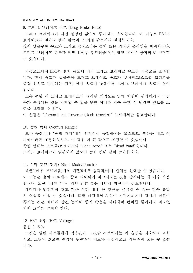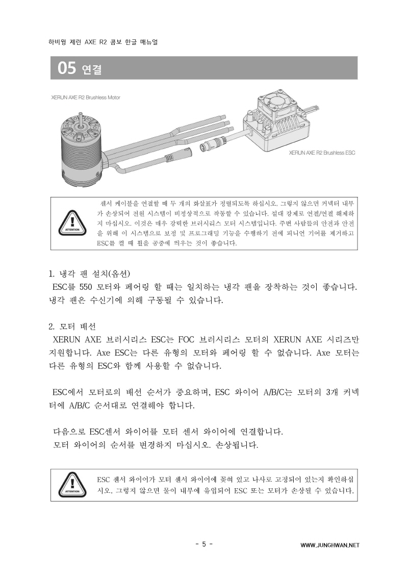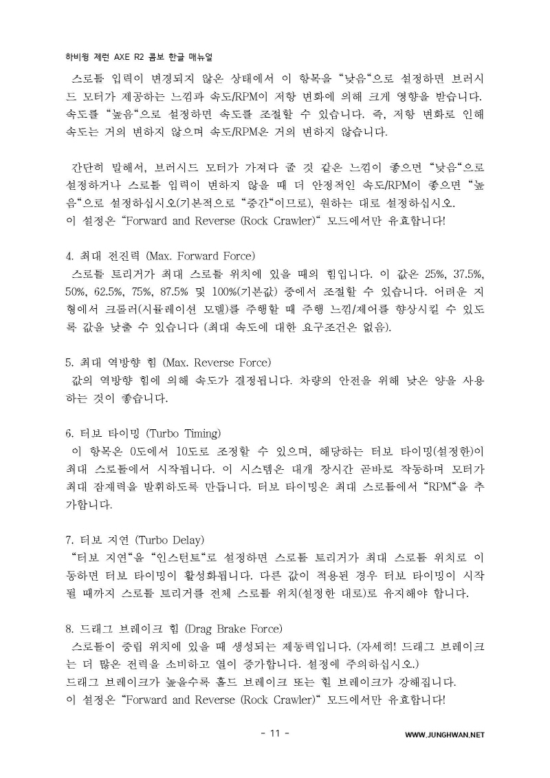 하비윙 XERUN AXE R2 Combo 변속기 및 모터 한글매뉴얼 입니다.