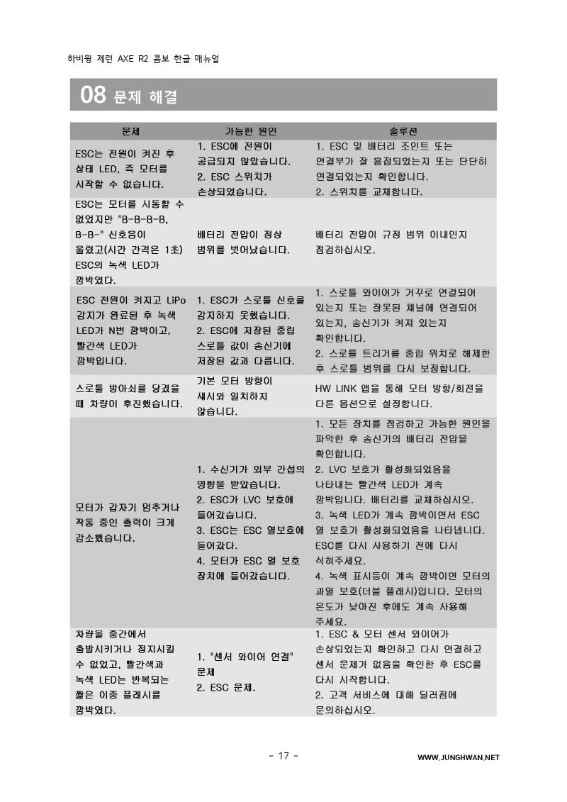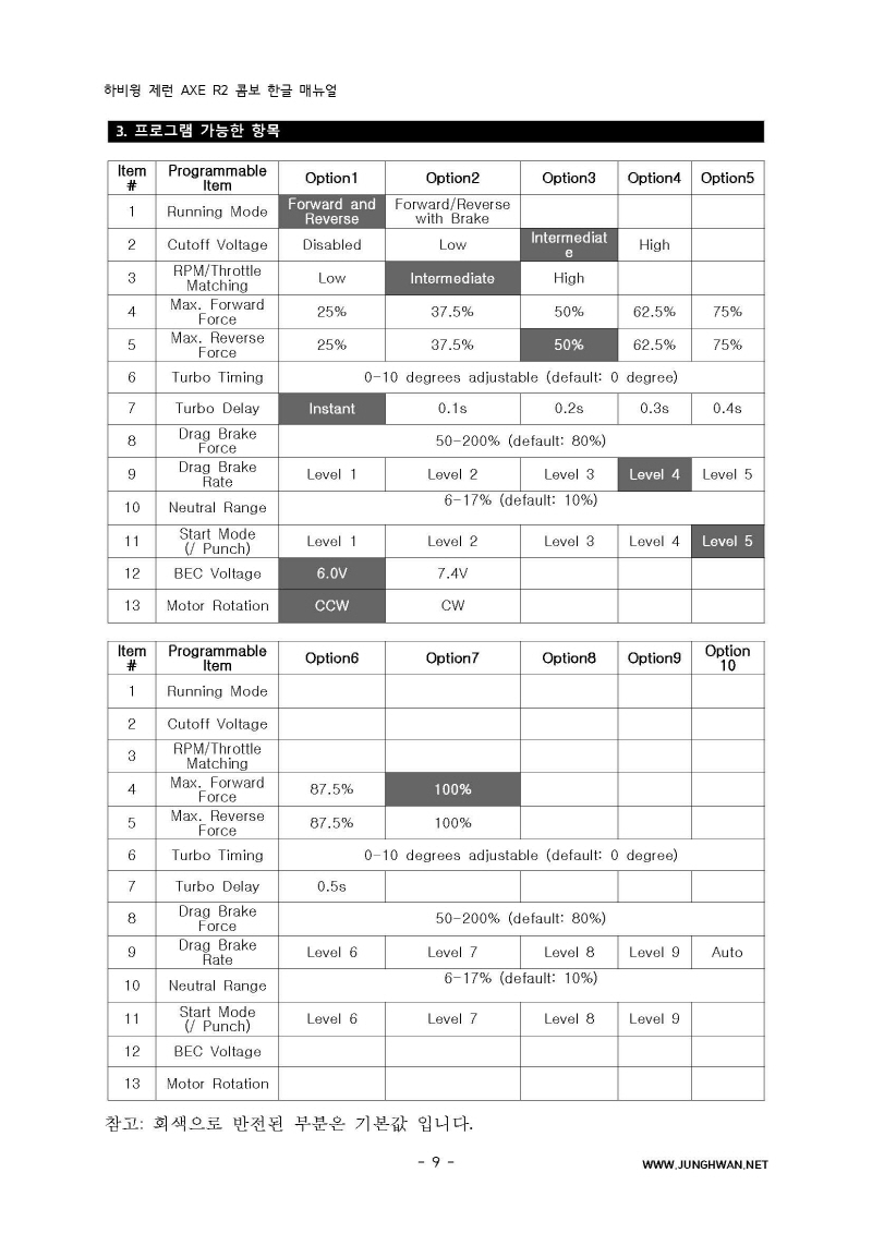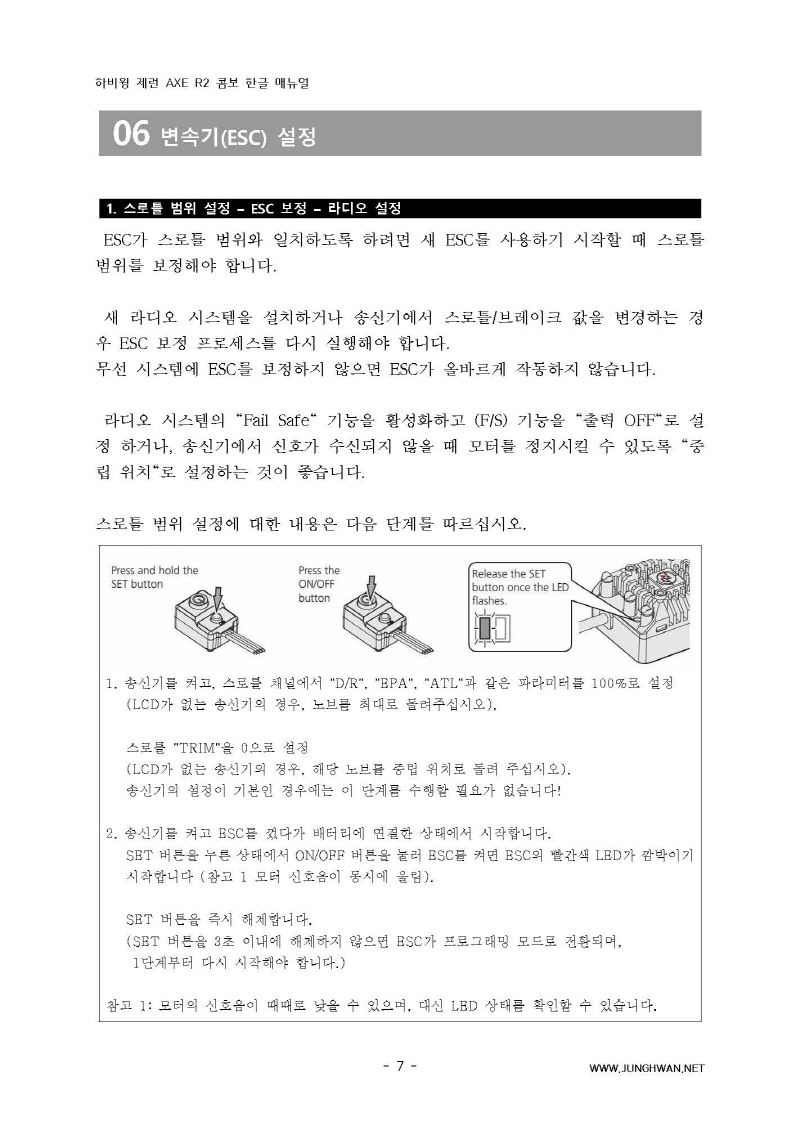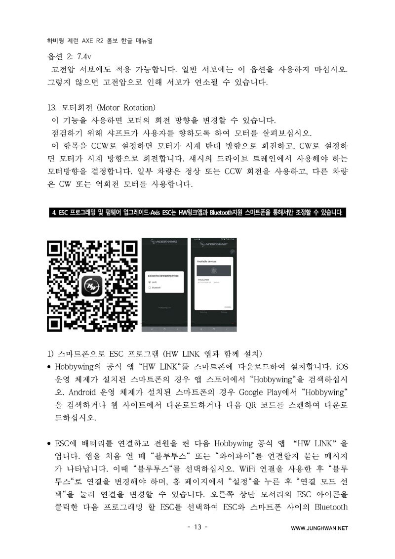 하비윙 XERUN AXE R2 Combo 변속기 및 모터 한글매뉴얼 입니다.