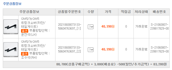 3. 에스엠오토몰에서 구입한 스테이 어셈블리 1세트입니다.