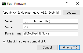 - OpenTx 펌웨어 업데이트