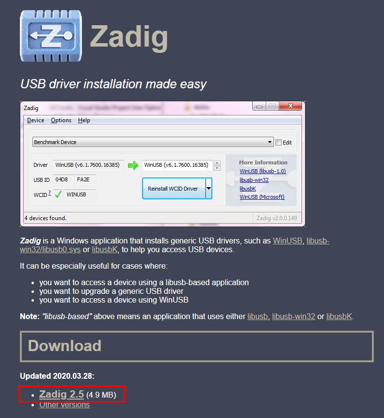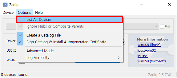 - 다운로드 링크 : https://zadig.akeo.ie