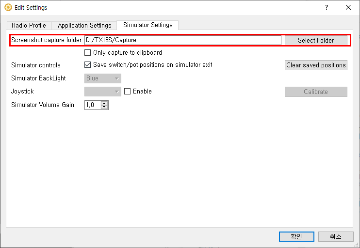 - SD카드 경로는 PC의 SD카드 경로입니다. (송신기와 동기화 후 시뮬레이터에서 사용합니다.)