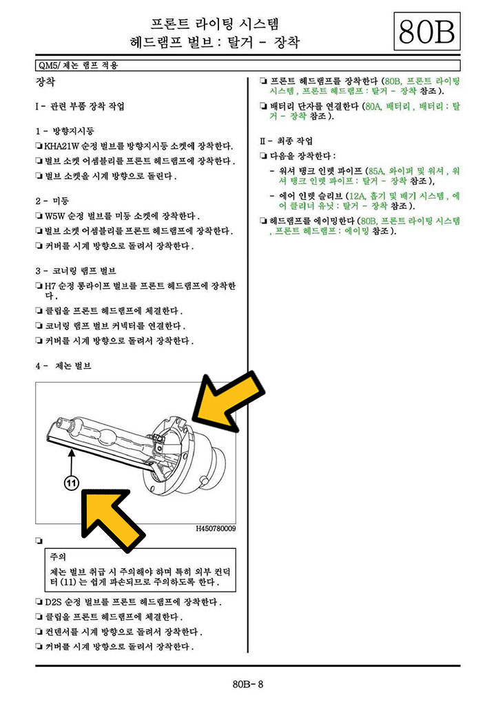 1. 본 작업은 기존 순정 제논(HID) 차량에 램프만 교체한 작업으로 등화류 불법개조가 아닙니다.