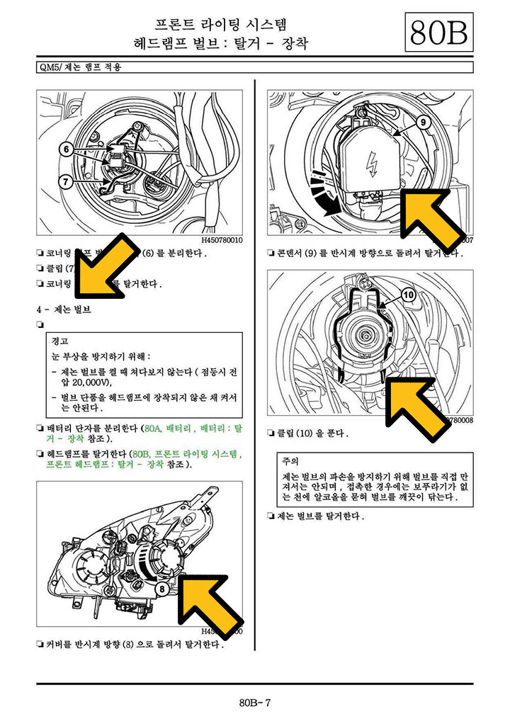 제 QM5는 당연히 구형 필립스 램프(완전 하얀색)가 들어있으므로 둘 다 교체하려면 부품비만 16만원이 들겠더군요.