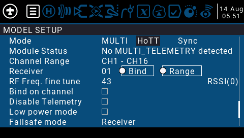내부 모듈을 MULTI로 선택하고, 프로토콜은 HoTT, Sync로 선택합니다.