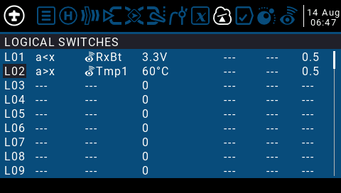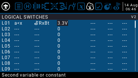 이렇게 하면 수신기 배터리가 3.3V미만이 되면 논리 값이 참이 되는 논리 스위치가 생성됩니다.