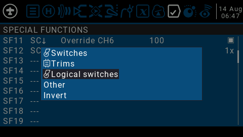 이제 SPECIAL FUNCTIONS으로 이동하여 해당 논리 스위치가 참이 되었을 때의 동작을 지정합니다.