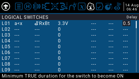 이렇게 하면 수신기 배터리가 3.3V미만이 되면 논리 값이 참이 되는 논리 스위치가 생성됩니다.