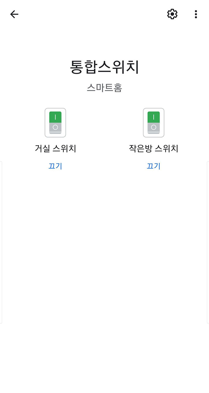 그래서 3번 스위치(1번, 2번 함께동작)를 "통합스위치"라는 별도의 방에 "거실스위치" 라는 이름으로 등록해 두면