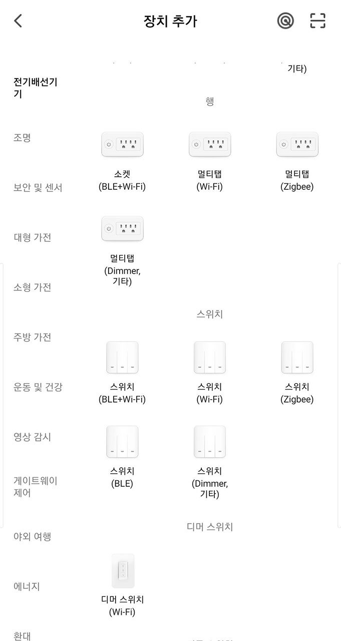 멀티탭은 스위치처럼 자동인식은 안되고 메뉴에서 선택해 줘야 합니다.