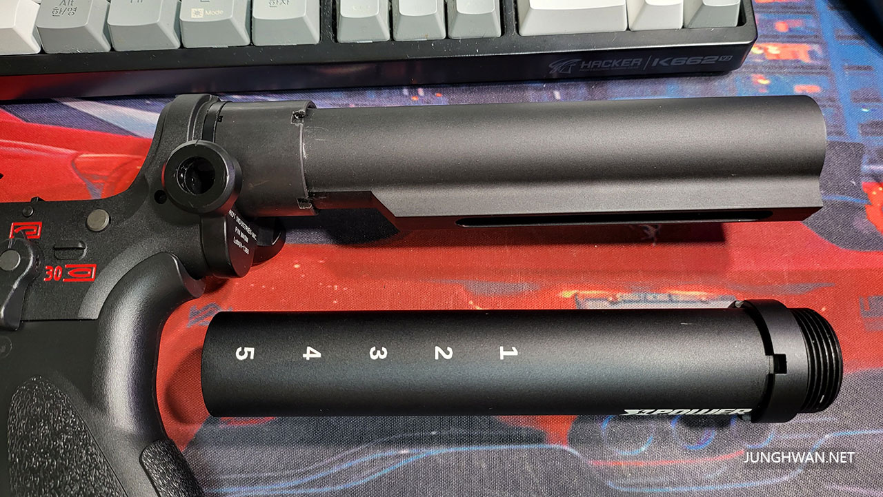 교체용 스톡세트에 포함된 스톡튜브는 뒷부분이 뻥 뚤려있어서 스톡을 끝까지 뺐을때 걸리지 않고 그냥 빠져버리더군요.
