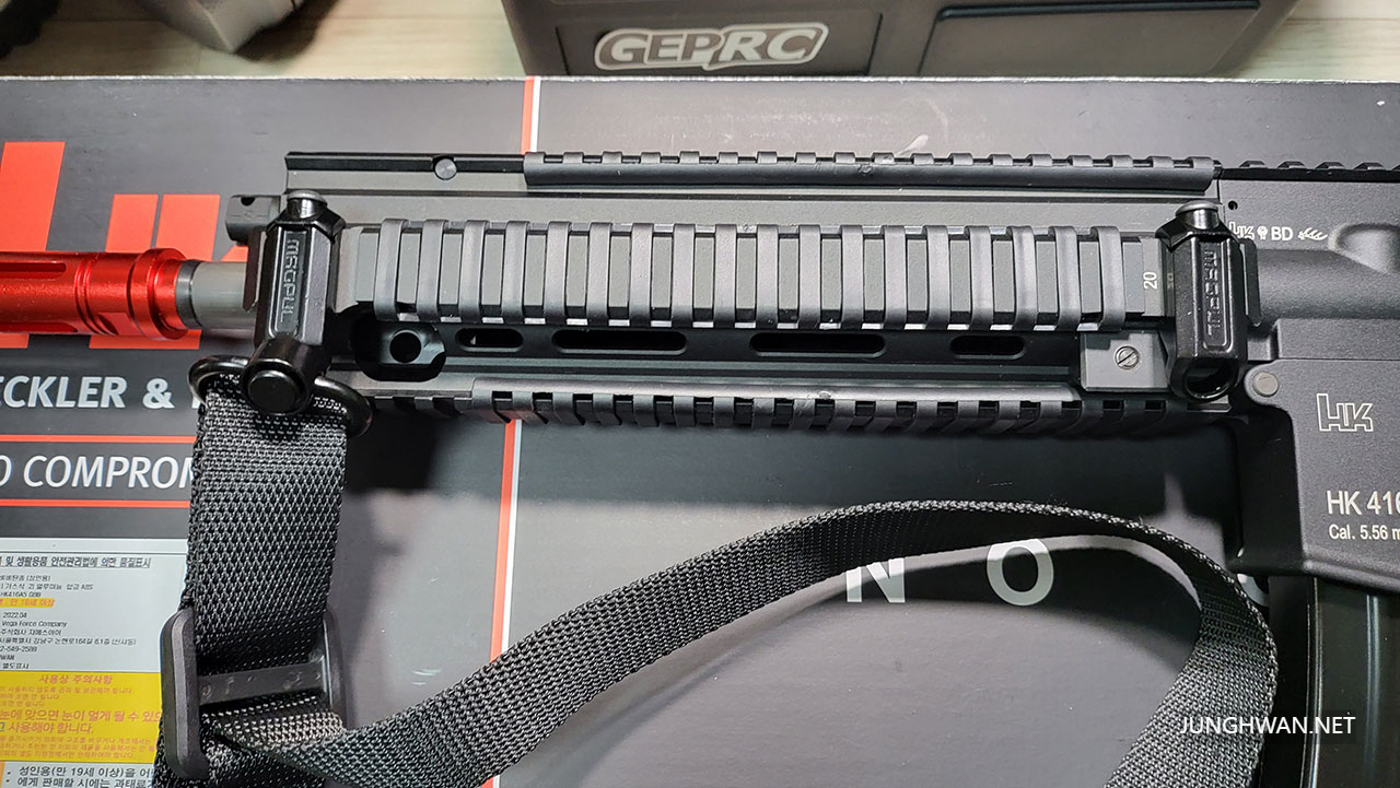 슬링 연결포인트는 라이플에 총 4곳과 1점식으로 사용할 때 연결하는 슬링 자체에 1곳 해서 총 5곳이네요 ㅎㅎ