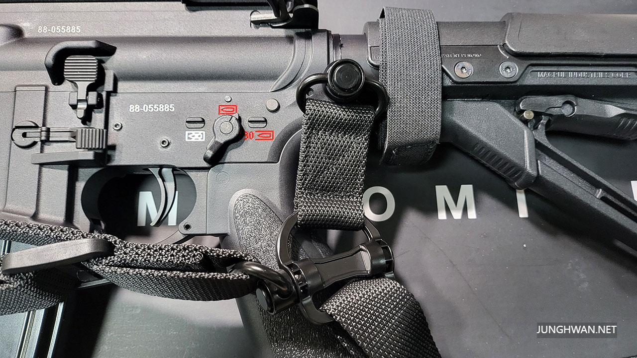 슬링 연결포인트는 라이플에 총 4곳과 1점식으로 사용할 때 연결하는 슬링 자체에 1곳 해서 총 5곳이네요 ㅎㅎ