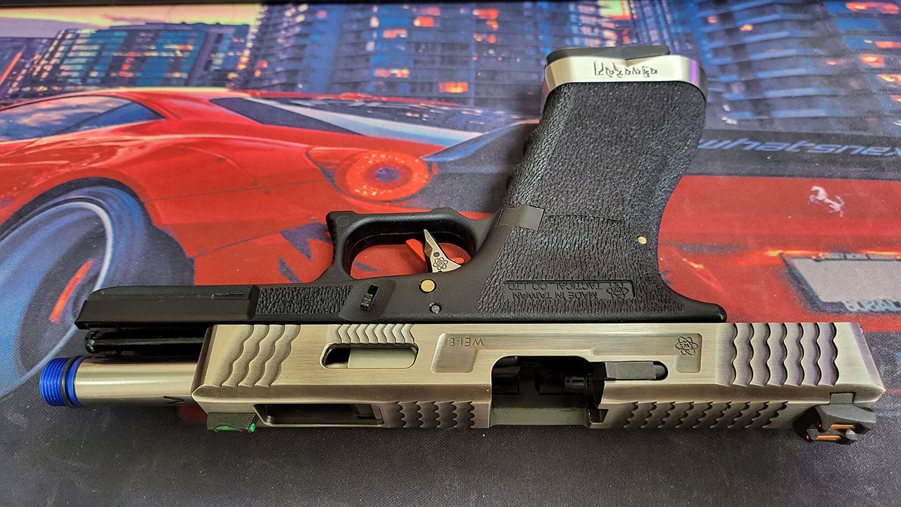 그중 G18과 동일한 베이스에 슬라이드 및 아웃바렐이 조금 커스텀 된 핸드건입니다.