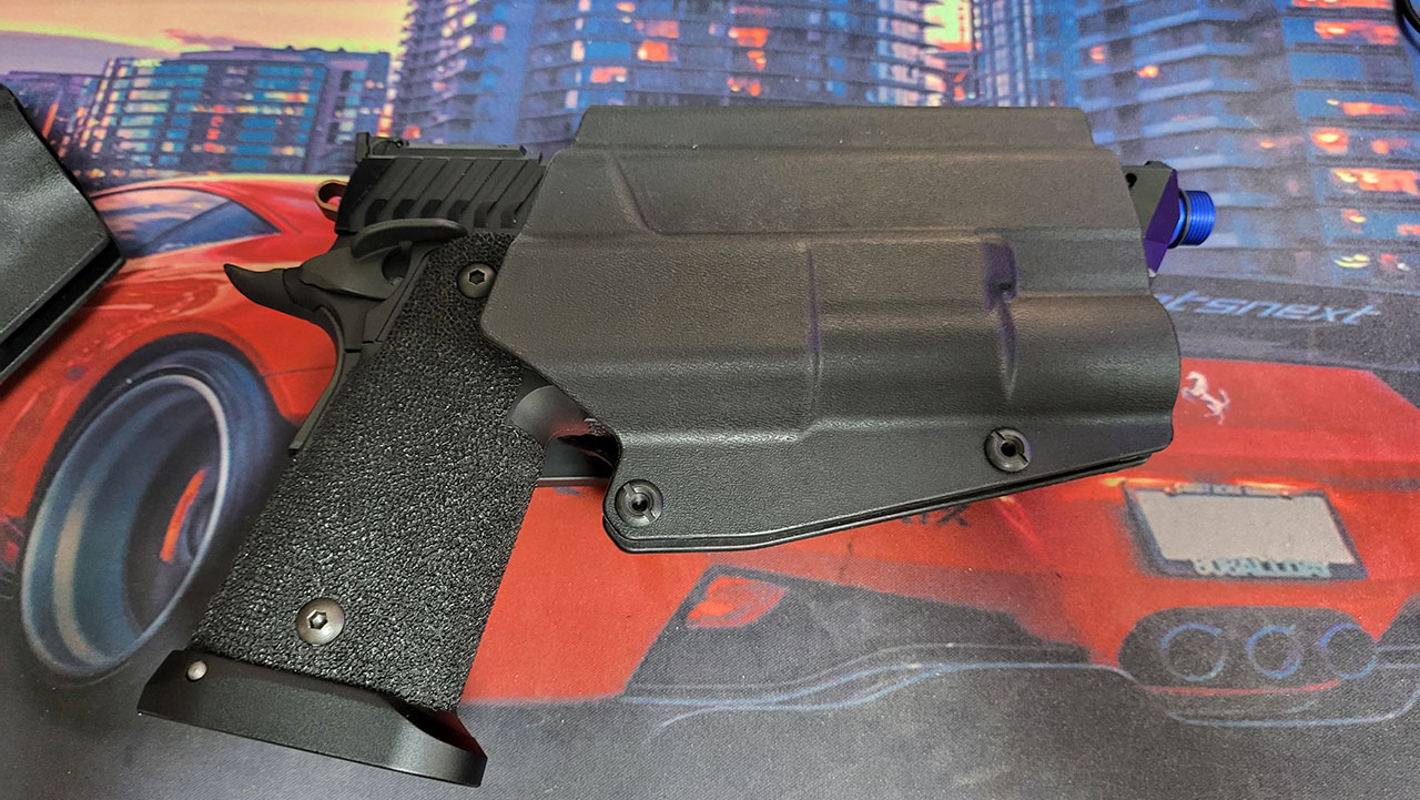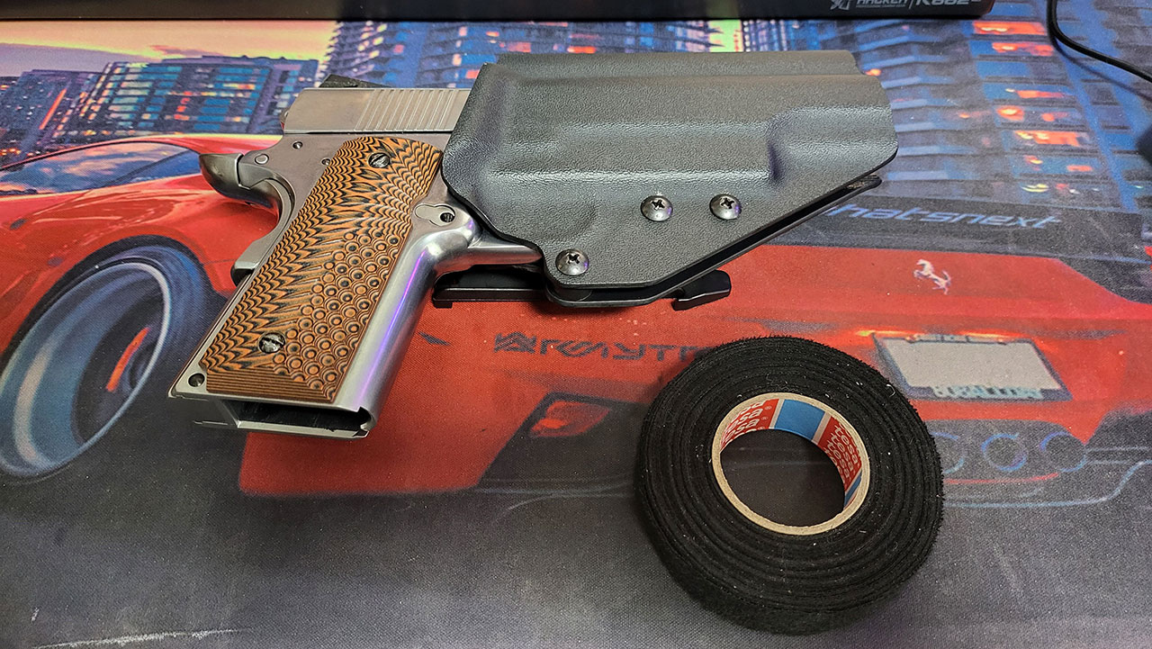 트리거 위쪽의 슬라이드를 잡아줄 수 있도록 면태이프를 홀스터에 부여주는 정상적으로 고정이 되네요 ㅎㅎ