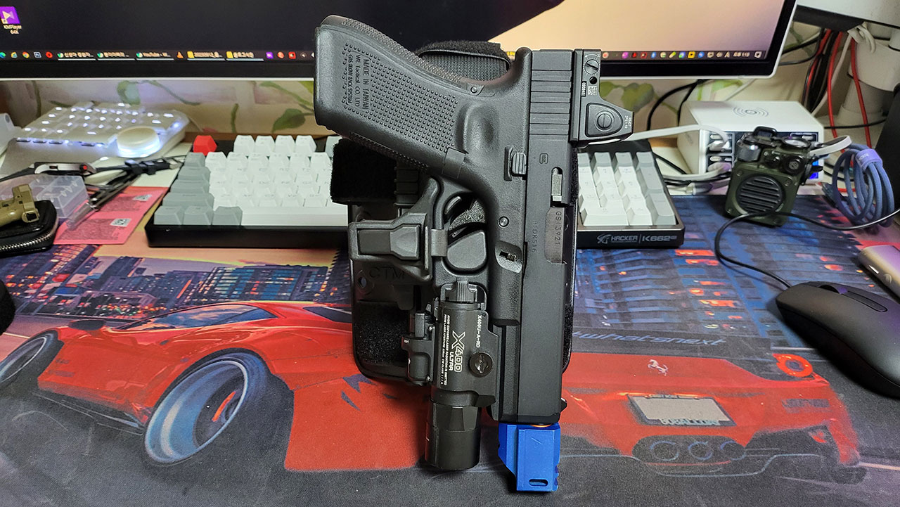좌측은 지난 1부에서 X400 전술라이트 때문에 수납하지 못했던 G17용 홀스터입니다.