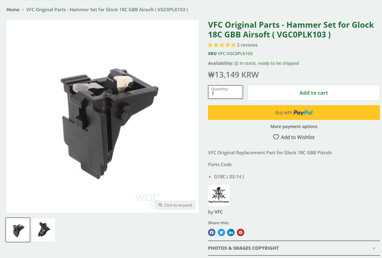 18C용 해머 셋을 구입해서 핀만 빼서 사용하고 다른 부품은 스페어로 보관해도 될 듯합니다.