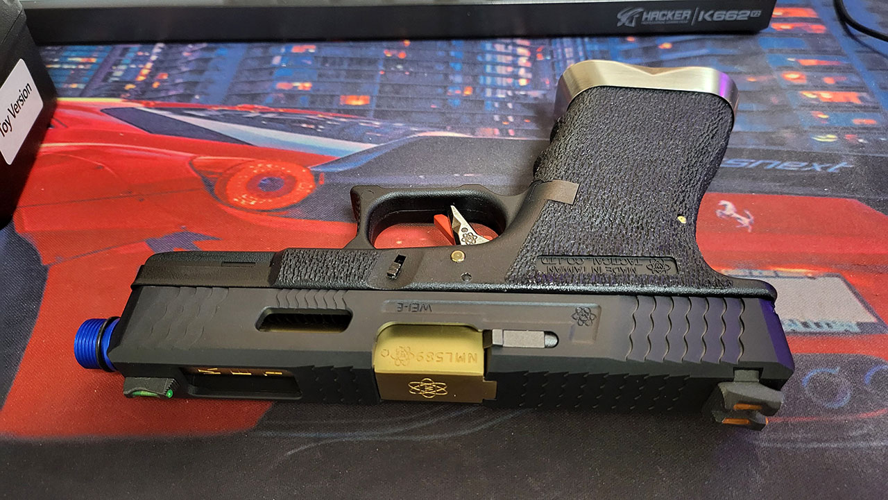 WE G-Force 시리즈 글록 19에 도트를 장착해 주었습니다.