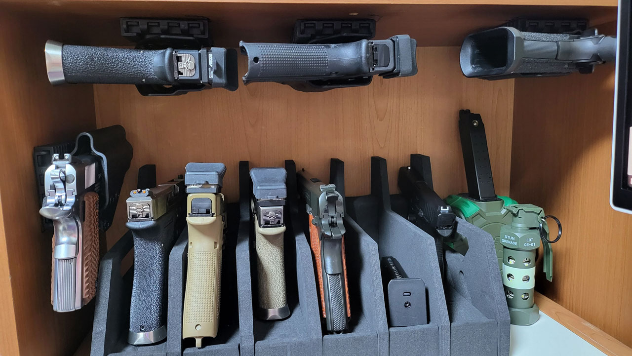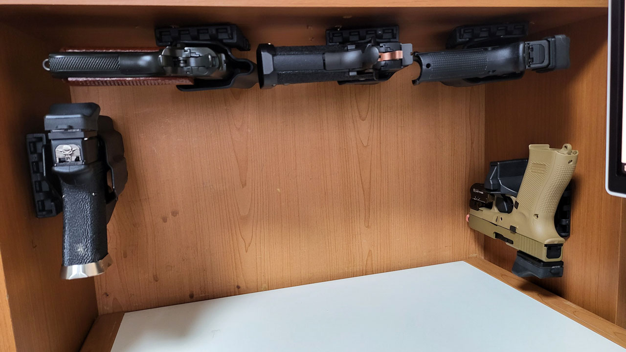 이상 가성비 좋은 핸드건 거치대와 홀스터를 활용한 핸드건 거치방법이었습니다. ㅎㅎ