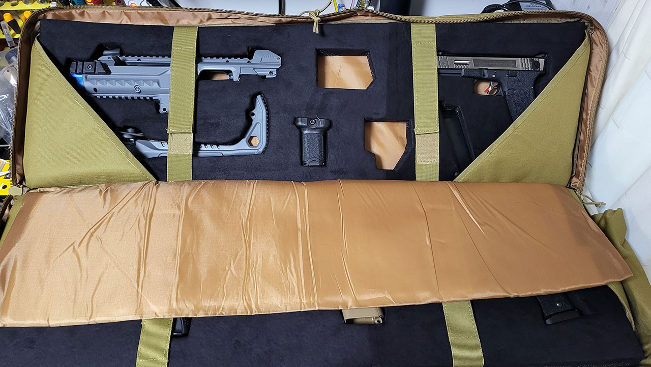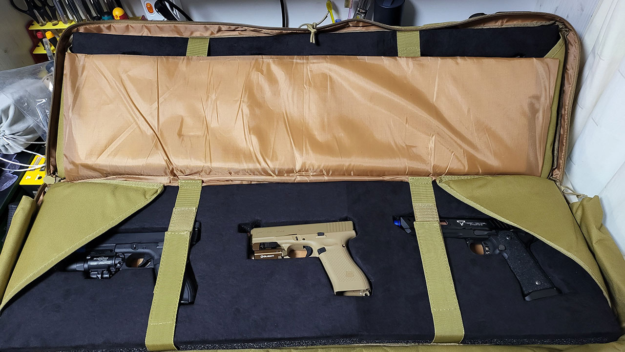 원래는 라이플용 가방(검은색)을 먼저 구입하고, 핸드건 용으로 길이가 조금 짧은 가방(탄색)을 구입했는데
