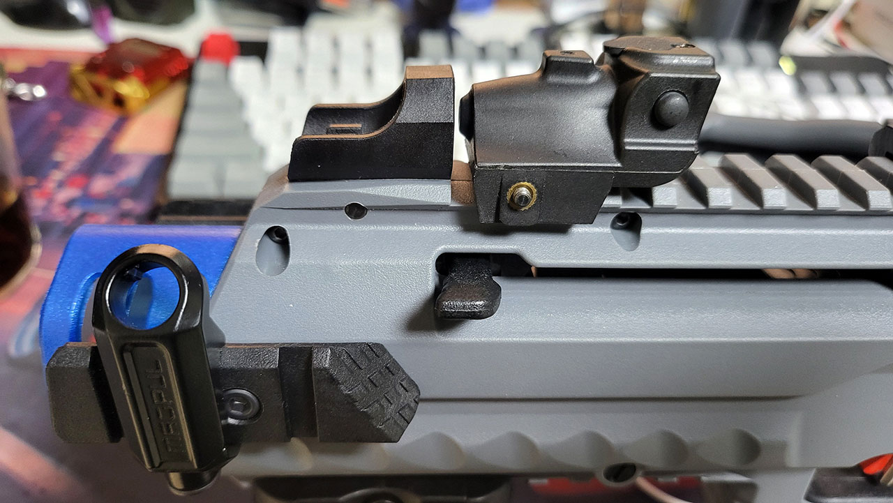 가슴쇠 바로 뒤에는 핸드건 용 레이저 표적지시기입니다.