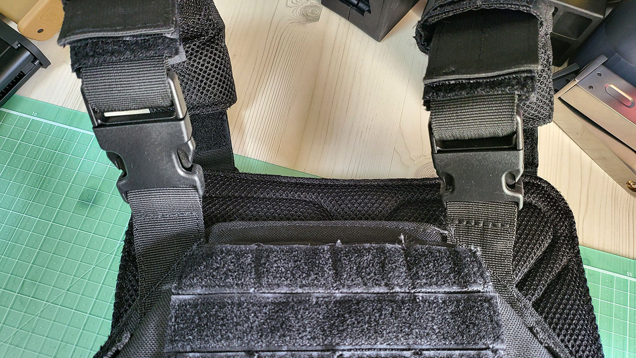 좀 끼어서 스펀지 없이 사용해 보려고 했는데 뽀대도 안 나고, 탄창등을 끼우면 몸을 찔러서 안 되겠더군요 ㅋㅋㅋ