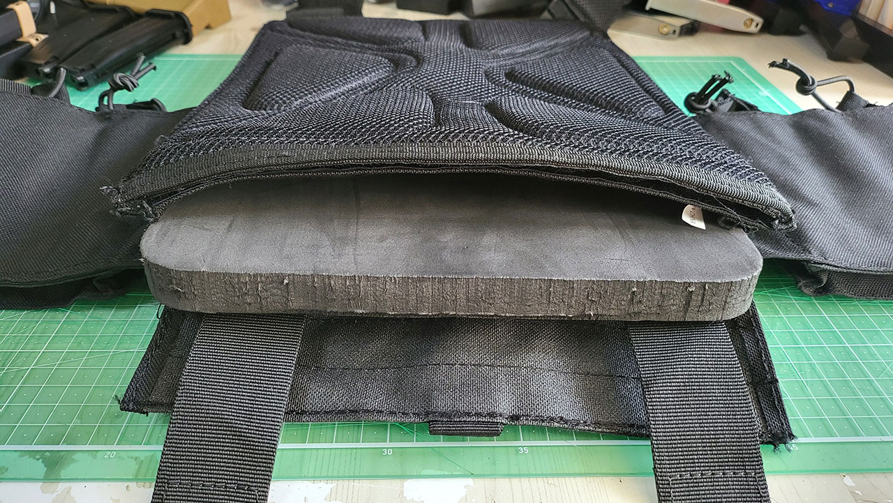 원래 용도는 철판이랑 충격흡수를 위한 충전재를 넣는 곳이라고 하던데 에어소프트에서는 스펀지 등을 넣습니다.
