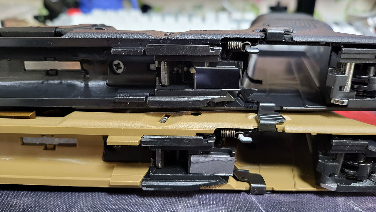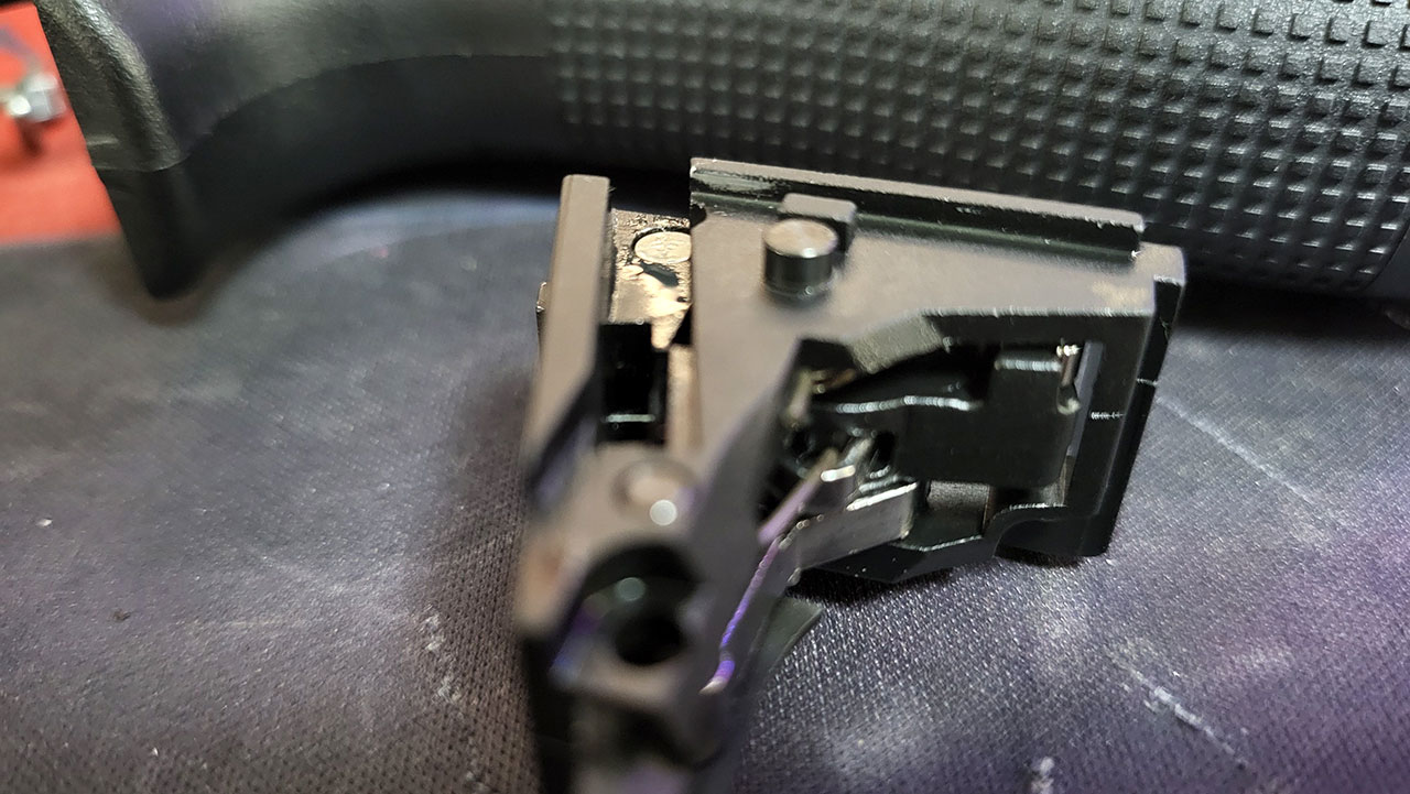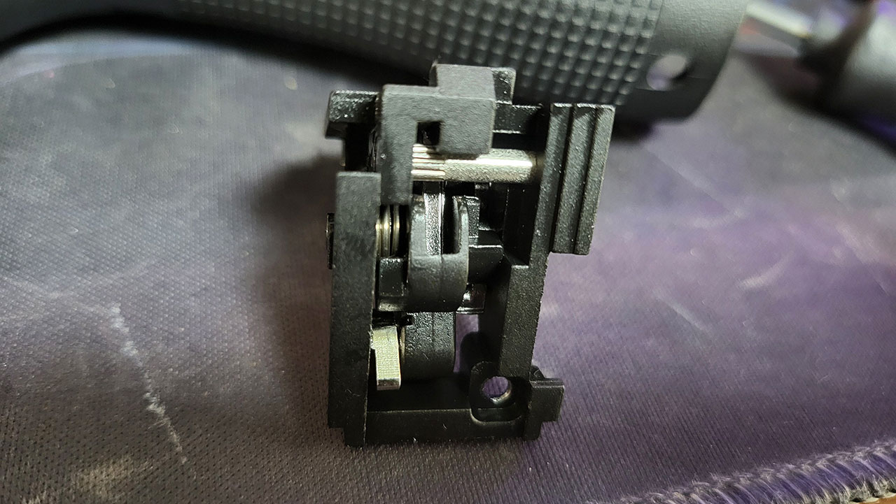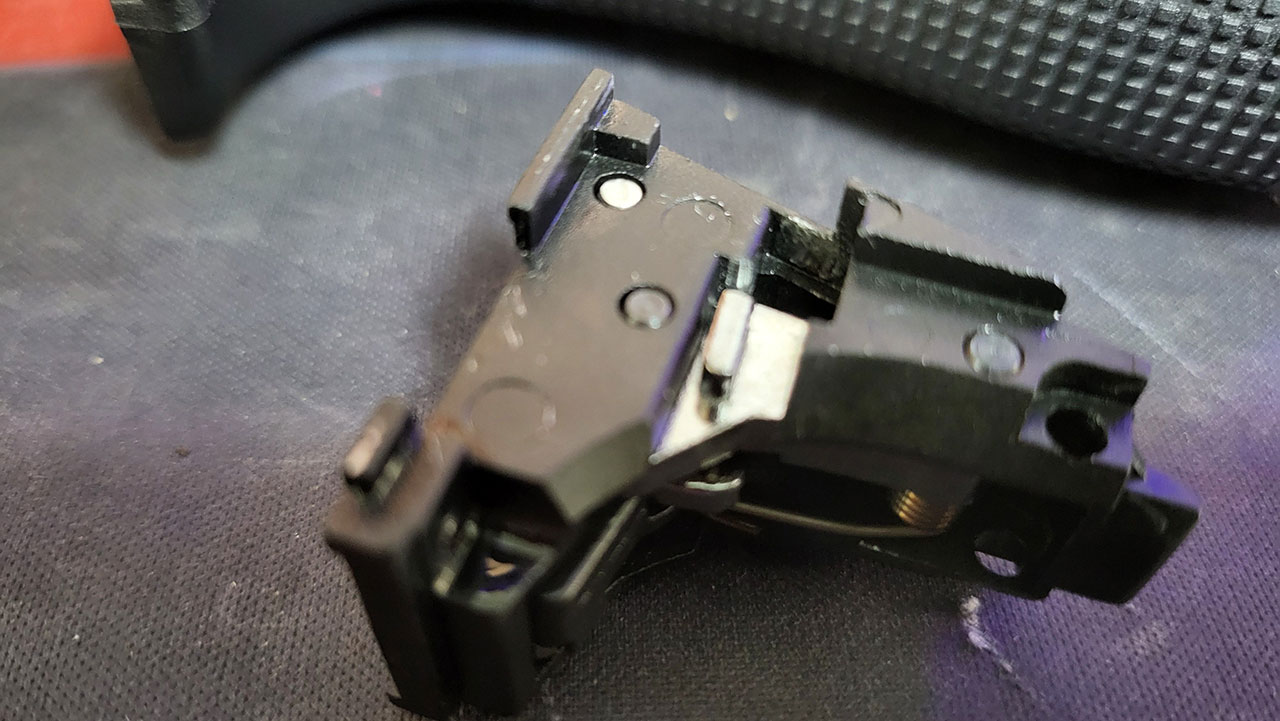 VFC 해머그룹의 경우 글록 18과 동일한 부품을 사용하다 보니 연사를 위한 부품이 빠지면서 핀도 함께 빠져있습니다.
