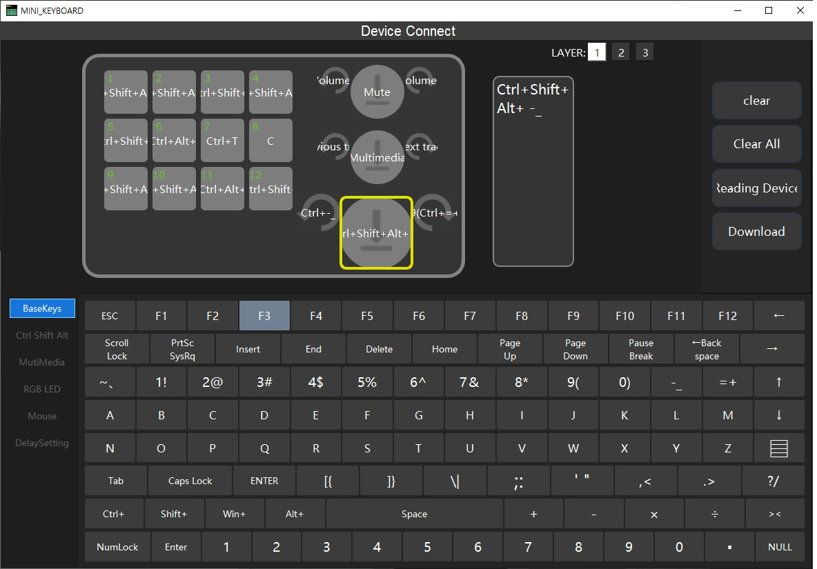 1번 레이아웃에는 포토샵에서 주로 사용하는 키를 설정했습니다. (3가지 등록 가능)