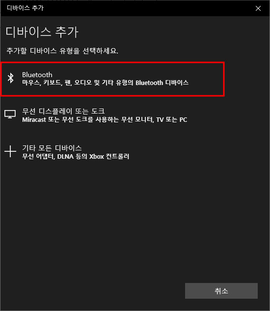 키 할당이 끝났으면 사용을 위해 블루투스 연결을 해 줍니다. (한 번만 페어링 해 두면 이후에는 자동연결 됩니다.)