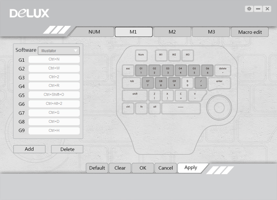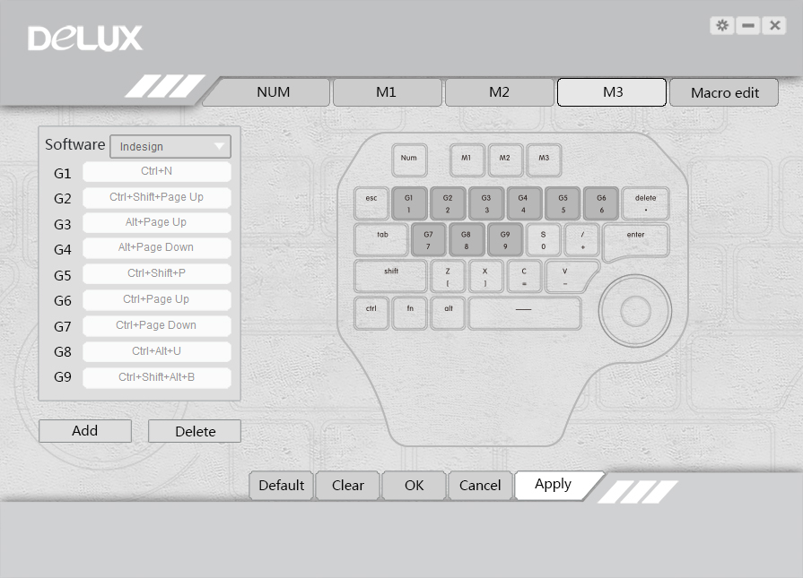 추가된 프로파일은 M1~M3 탭에서 "Software" 항목에 설정해 주면 됩니다.