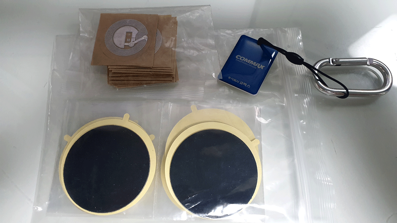 집 현관 도어락은 13.56Mhz 태그이고, 동(라인) 출급키는 125Khz 태그입니다.