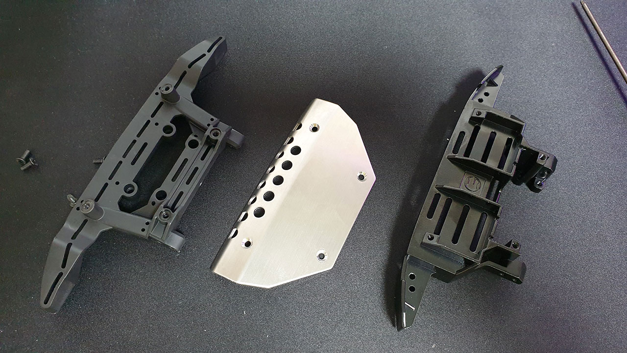 보호용 스키드 플래이트를 메탈파츠에 옮겨준 뒤 고정하면 됩니다. 피스홀이 조금 맞지 않아서 2개만 고정했다가 지금은 억지로 4개다 고정을 한 상태입니다. ㅎㅎ