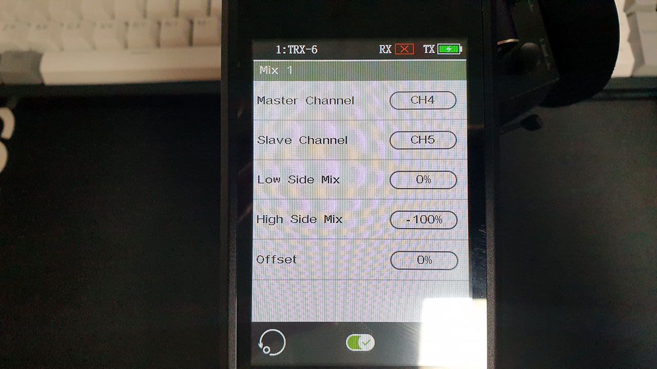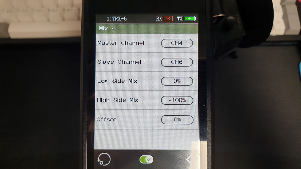 이유는 믹스 값이 -100이 최대이다 보니 믹스 1개만 설정이 0이 되어버리네요..