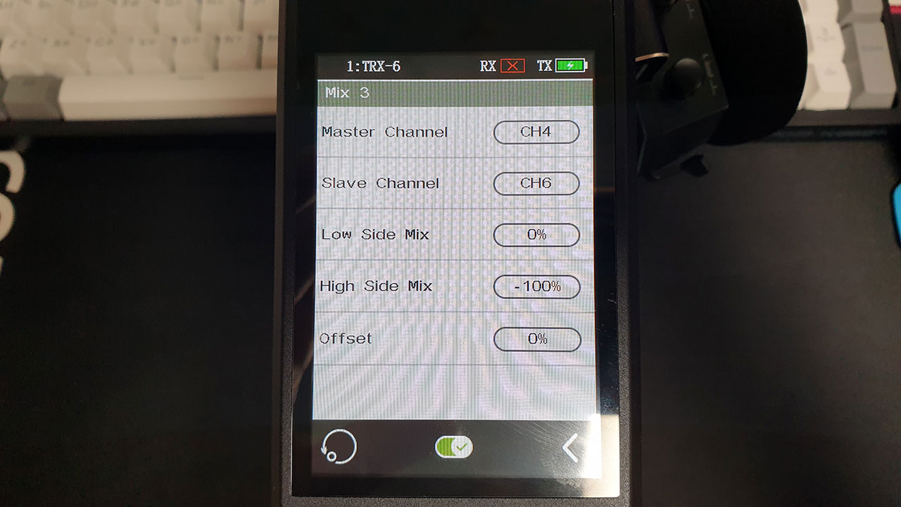 믹싱3은 후륜 디프 락/언락 채널인 CH6에 대해 설정합니다.