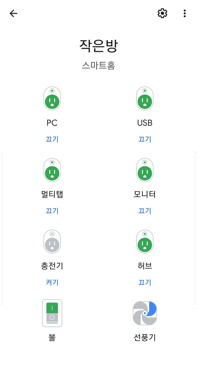 예를들면 "작은방 다꺼줘~" 라고 하면 작은방에 있는 전등이나 멀티탭, 선풍기 이런것들을 다 꺼주더구요 ㅎㅎ