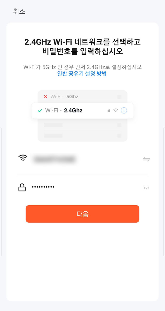 해당 스마트스위치는 2.4Ghz 전용 제품이므로 가정에 사용하는 공유기가 2.4G, 5G 겸용 제품이라면 2.4G Wifi에 연결해 줍니다.