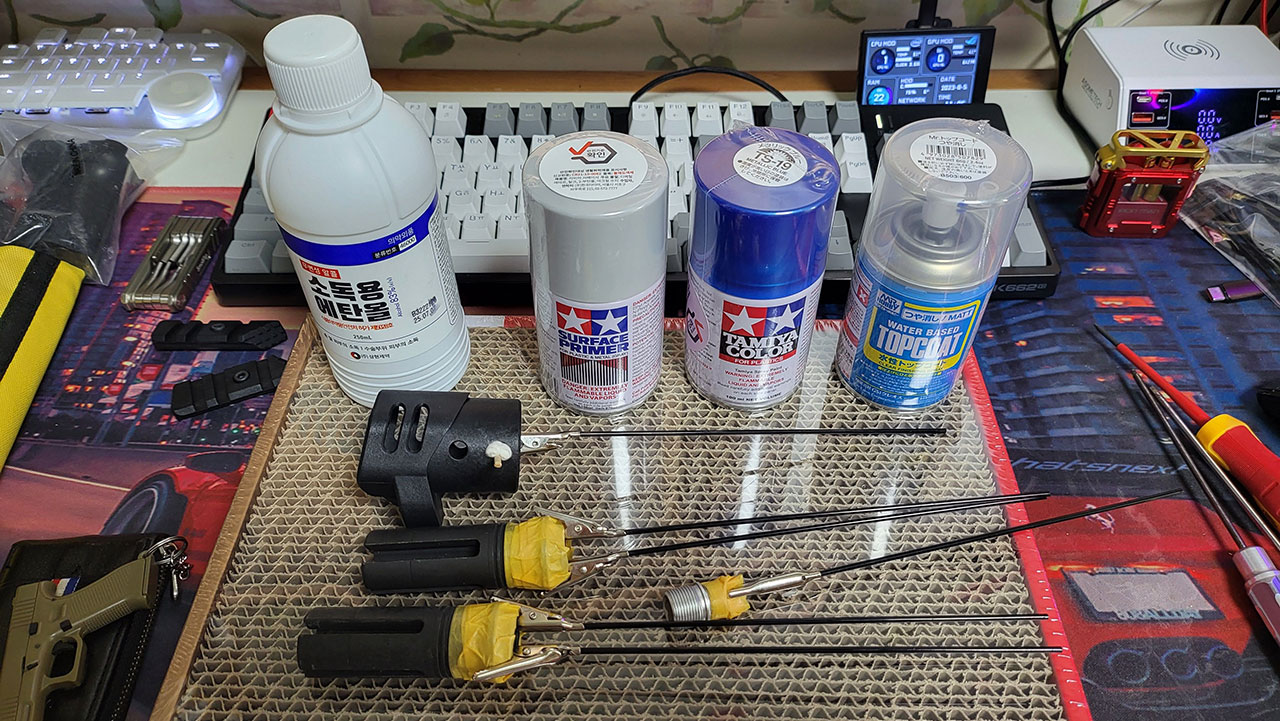 핸드건 및 라이플용 소음기 등 컬러파트 도색을 진행했습니다.
