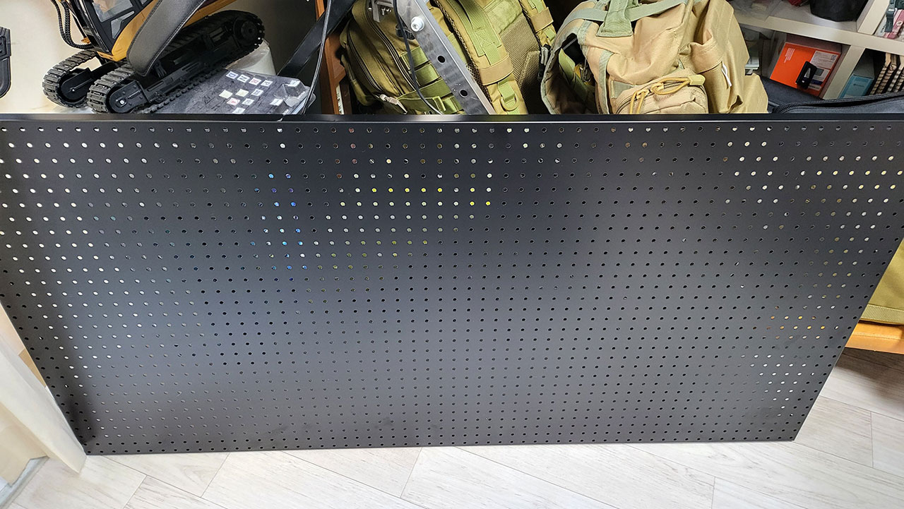 처음엔 계획에 없었는데.. 가방에만 넣어두는 것보다는 전시하는 게 좋을 것 같아 고민하다 보니 타공판(페그보드)이 가장 효율적일 것 같더군요.
