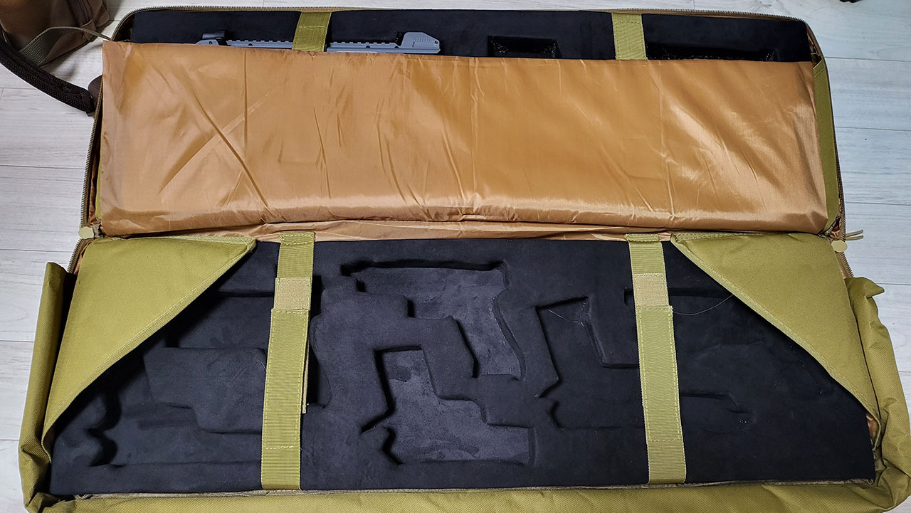 원래는 라이플용 가방(검은색)을 먼저 구입하고, 핸드건 용으로 길이가 조금 짧은 가방(탄색)을 구입했는데