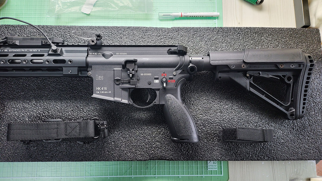 라이플 및 액세서리를 보관한 상태입니다.