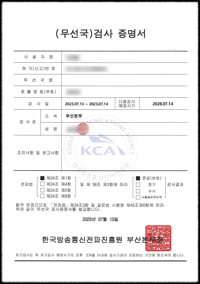 1. 직구한 무전기의 준공검사는 동일 제품 1대만 가능하므로 동일 모델 2대를 구입하신 경우 1대만 준공검사 가능합니다.